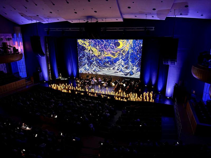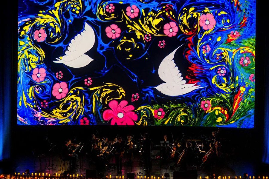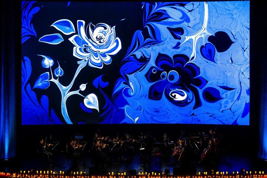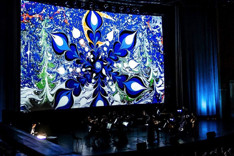 Пока оркестр исполняет музыку, на масштабный экран будут проецироваться картины на воде, которые прямо в этот момент будет создавать художница Ольга Каурова. Эбру — художественная техника с многовековой историей. Современные технологии позволили превратить эбру в эффектное шоу, которое дополняет музыку, погружая зрителей в происходящее на сцене. Концерт в сопровождении водной анимации подарит потрясающие аудиовизуальные впечатления.