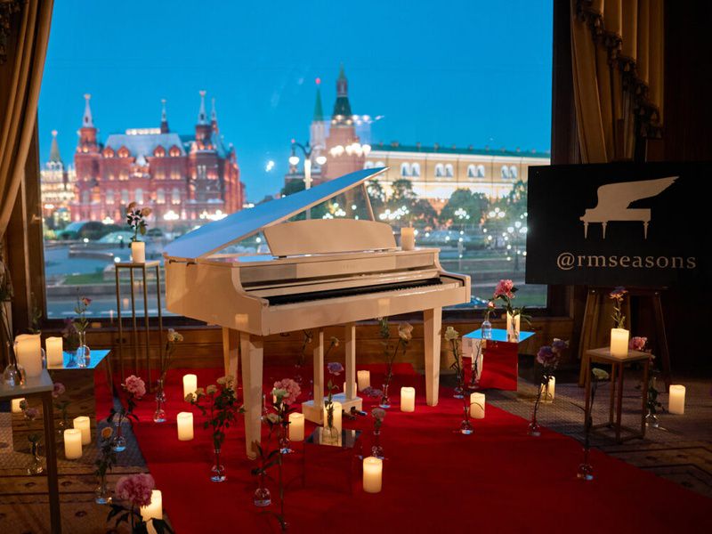 Концерт пройдёт в уютном зале с изысканным классическим интерьером и панорамным остеклением. Гости вечера почувствуют себя в саду, где всё окружено музыкой и цветами. Впечатляющий вид на Кремль и огни вечерней Москвы придадут вечеру ещё больше шарма.