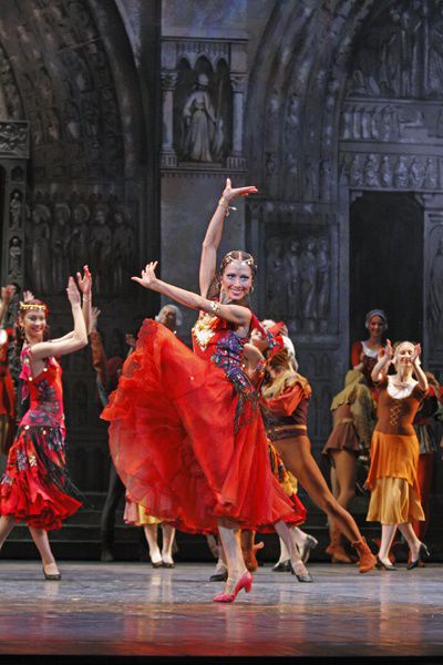 «Эсмеральда» тщательно и разнообразно придумана как в хореографическом, так и в драматическом отношении. Лишь только поднимается занавес, зритель оказывается в средневековом Париже, на площади перед готическими порталами Нотр-Дама. Шутовское «коронование» Квазимодо на празднике городской бедноты сменяют изящные салонные танцы в богатом доме невесты капитана Феба. Но главным украшением балета остается изобретательный и страстный танец самой Эсмеральды — темпераментной цыганки, загнанной в ловушку собственной же красотой.