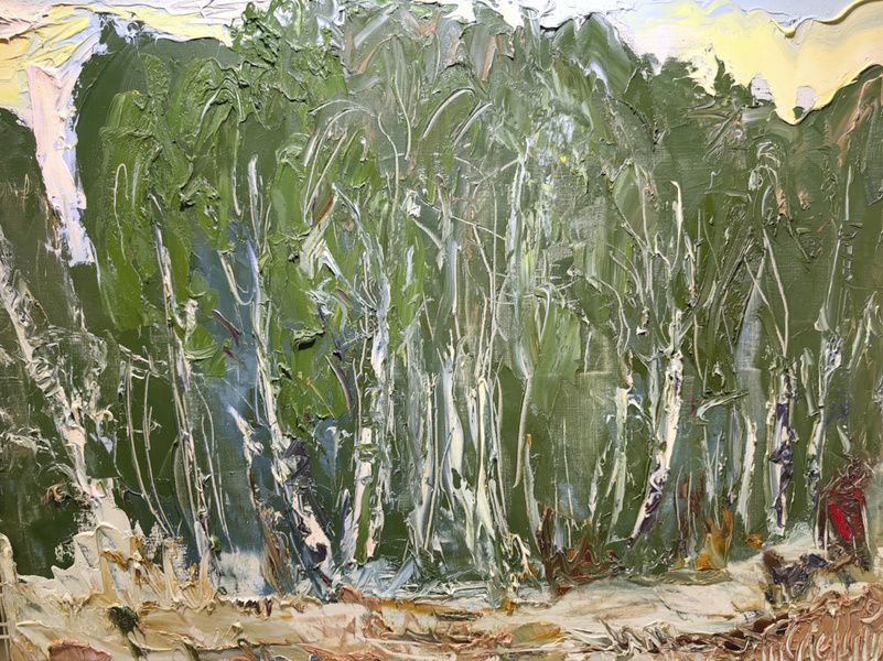 В центре внимания — живописная техника Анатолия Слепышева, построенная на работе мастихином. Объёмные мазки, плотные слои краски и следы прикосновений формируют рельефную поверхность, где изображение складывается постепенно, и создают ощущение присутствия. В работах художника появляются природные мотивы и сцены повседневной жизни, которые могут неожиданно соединяться с мифологическими образами.