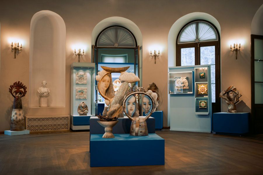 В экспозицию вошло около 70 работ, созданных за более чем два десятилетия. Здесь можно увидеть керамическую скульптуру, настенные рельефы и панно с яркой сюжетной росписью. У каждого произведения свой характер: одни вещи тяготеют к камерной пластике, другие строятся на выразительном декоративном жесте, игре цвета и поверхности.