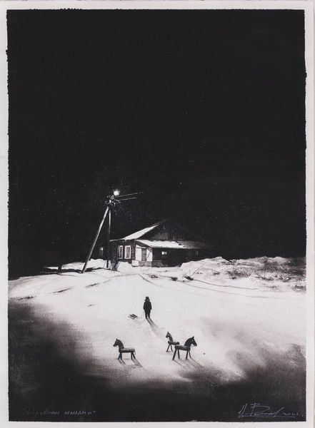 Важной опорой для понимания этого контраста становится сравнение с эмбиентом — музыкальным жанром электронной музыки, где главное — не мелодия, а настроение, тембр и погружение. Так же устроены и эти произведения. Они не рассказывают историю напрямую, а создают атмосферу, в которой снег, тёмные деревенские дома, металлические конструкции, сухой борщевик у дороги и детские фигуры в старой зимней одежде становятся образами с глубинными смыслами.