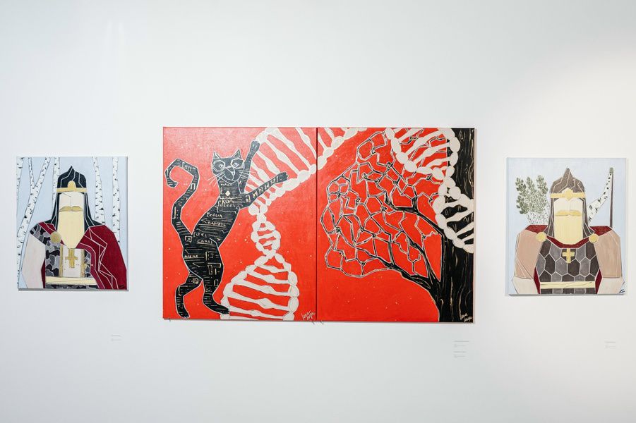 В центре экспозиции — попытка почувствовать современную русскую идентичность. Художница Елена Лангер обращается к фольклору, приметам, ритуалам, праздникам и верованиям, но рассматривает их не как застывшее наследие, а как материал для нового разговора. Исторический пласт переводится в визуальный язык шутки, игры и интернет-культуры.