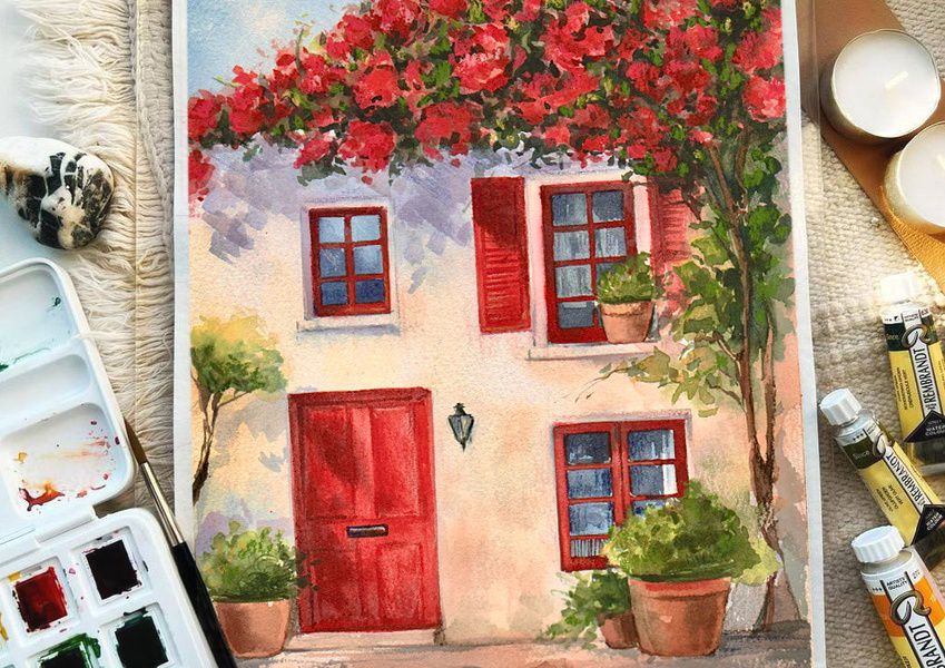 Участники занятия вдохновятся весенней Грецией и напишут атмосферную иллюстрацию, передающую нежность цветущей вишни.