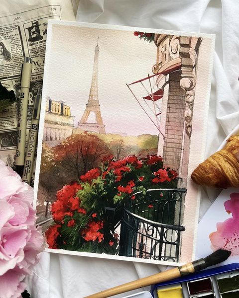 Ароматные цветы, уютный французский балкончик и завораживающий вид на Эйфелеву башню — участники мастер-класса создадут романтическую иллюстрацию в акварельной технике живописи.
