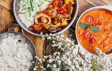 Индийская кухня до сих пор кажется диковинной, но в эти яркие краски и ароматы невозможно не влюбиться. В специальном тандыре пекут индийские лепёшки из пшеничной муки, которые затем заполняют разными начинками. Если будете пробовать карри и не уверены, что вам понравятся пряности, предупредите повара. В меню много и других аутентичных блюд из Индии. Средняя цена блюда — 600 рублей.