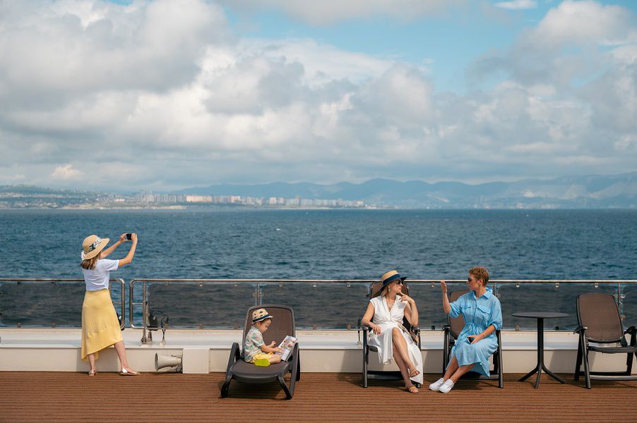 Для детей проводится насыщенная дневная программа в детском клубе, а вечером по теплоходному радио передают сказки для самых маленьких.