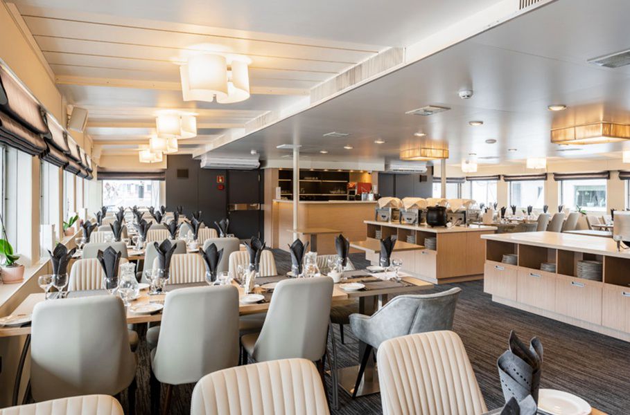 Помимо ресторанов, на борту теплоходов есть тематические бары, кондитерские и кофейни с тёплой атмосферой, настраивающей на отдых.