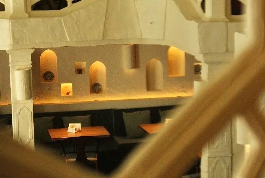 Интерьер в ресторане «Шербет» соответствует ожидаемым мотивам востока. Приглушённый красный свет из больших люстр, высокие стулья, шёлковые подушки на диванах, национальный декор на стенах. Все эти элементы складываются в единую картинку богатого убранства. Интерьер в восточном стиле и мягкость диванов создают особенную атмосферу отдыха, которая погружает в негу эйфории и дарит чувство полной свободы и расслабленности.