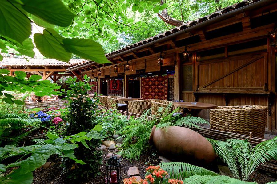 Здесь гости погружаются в романтичную атмосферу радушного кавказского гостеприимства, где за бокалом вина подадут такие изыски грузинской кухни, как перепела на мангале, ароматное лобио, бастурма, сациви, хачапури, сыры сулугуни и падуж с мятой, шашлык, хинкали, ачма, рулька барашка, цыплёнок табака, икра (любая — чёрная, красная, заморская) и многое другое.