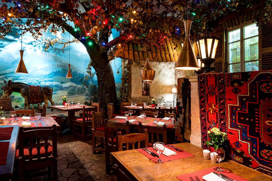 На десерт здесь предлагают пиламуши (шарики из виноградного сока), варенье, мёд и пироги. А запить всё это можно чаем, огромный выбор которого представлен в отдельной чайной карте.