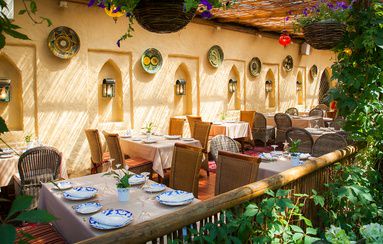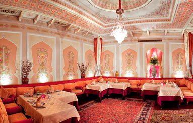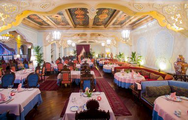 Разнообразные мозаики на стенах, узоры на окнах и арке, шикарный текстиль делают ресторан аутентичным и добавляют совершенного звучания восточной культуры. Стоит отметить, что специально для восстановления всех элементов интерьера в Москву пригласили талантливого мастера из Ташкента. Восточные кушетки и пуфики, дорогие ковры ручной работы и мягкое освещение добавляют и без того удивительному ансамблю ещё больше красок, темперамента и самобытности. А летом на веранде ресторана, по традициям шикарного восточного дома, живут красавцы павлины.