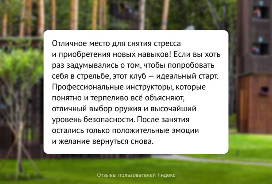 Спортинг-клуб открыт для всех, независимо от опыта. Вы можете приехать со своим ружьём или арендовать всё необходимое на месте, чтобы пострелять по тарелочкам в своё удовольствие. Если хочется чего-то большего, стоит обратить внимание на специальные программы — такие как «Старт-свидание» или «Отец и сын». Кроме того, в клубе можно приобрести подарочный сертификат — запоминающийся подарок на любой праздник для человека, который ценит качественный и интересный отдых. Опытные инструкторы всегда рядом: они помогут освоить азы стрельбы и дадут профессиональные рекомендации по совершенствованию навыков.