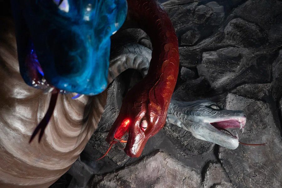 Экспозиция впечатляет масштабом — это 21 зал, расположенный на 2 этажах и 700 квадратных метрах. В каждом из них посетителей ждут сказочные герои и артефакты, тайны и загадки. Здесь можно проникнуть в тайны избушки Бабы-яги и Змея Горыныча, раскрыть секреты былинных героев и древних кузнецов, побывать в саду с золотыми яблоками и волшебной водой — живой и мёртвой, увидеть сапоги-скороходы и другие артефакты из русских сказок, примерить кокошник, погулять по Морскому царству, исследовать болота и старинное кладбище и встретить самого Кощея Бессмертного.