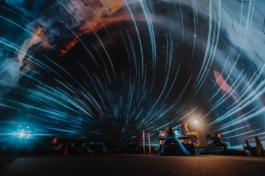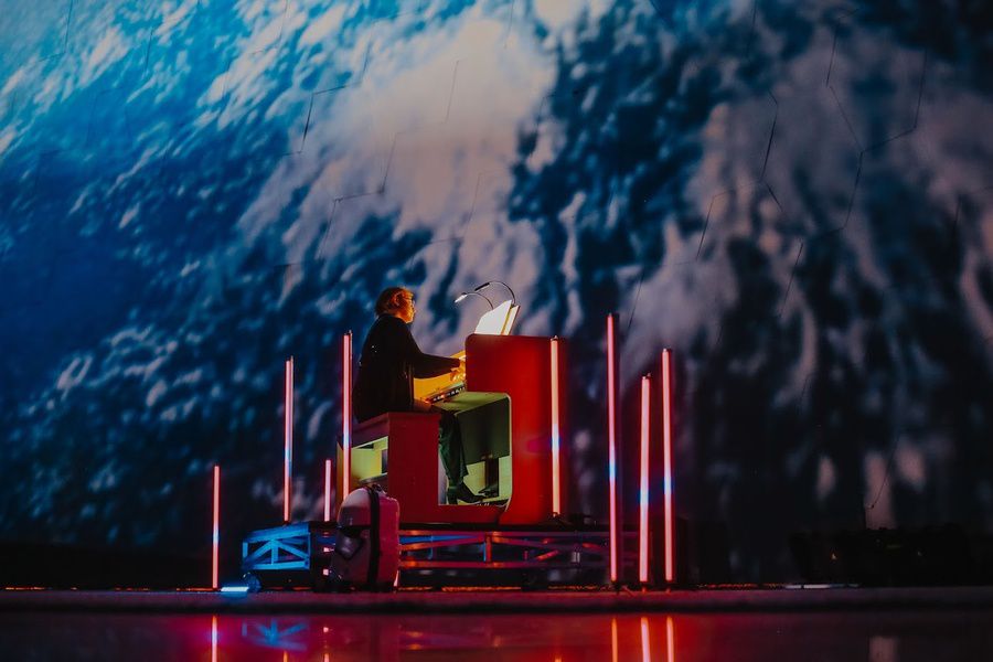 Концерт объединяет органную музыку и визуальную атмосферу космоса, создавая особое звуковое и пространственное впечатление. Пока звучат произведения разных композиторов, зрители наблюдают за тёмным звёздным небом, что не встретишь в летнем Петербурге.