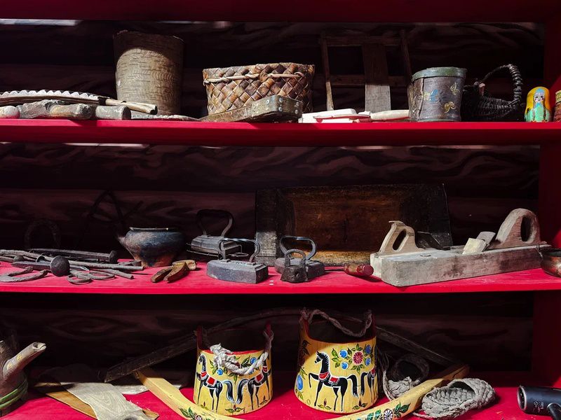 Особую атмосферу мастер-классу придаёт убранство музея: гости творят в окружении старинных предметов крестьянского быта, которые можно потрогать, а с некоторыми даже можно активно взаимодействовать. Дополняют экспозицию разнообразные кокошники, которые можно примерить и сделать фото на память.
