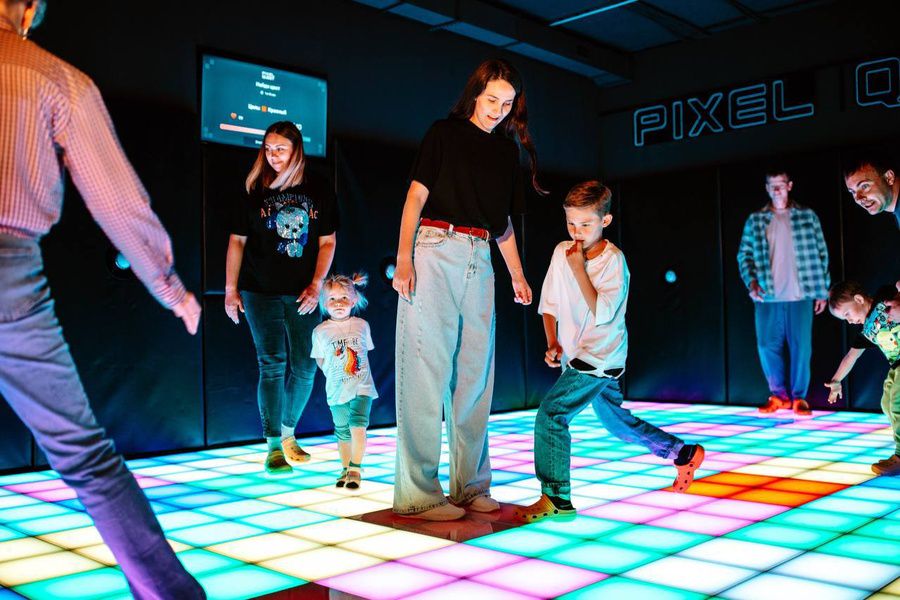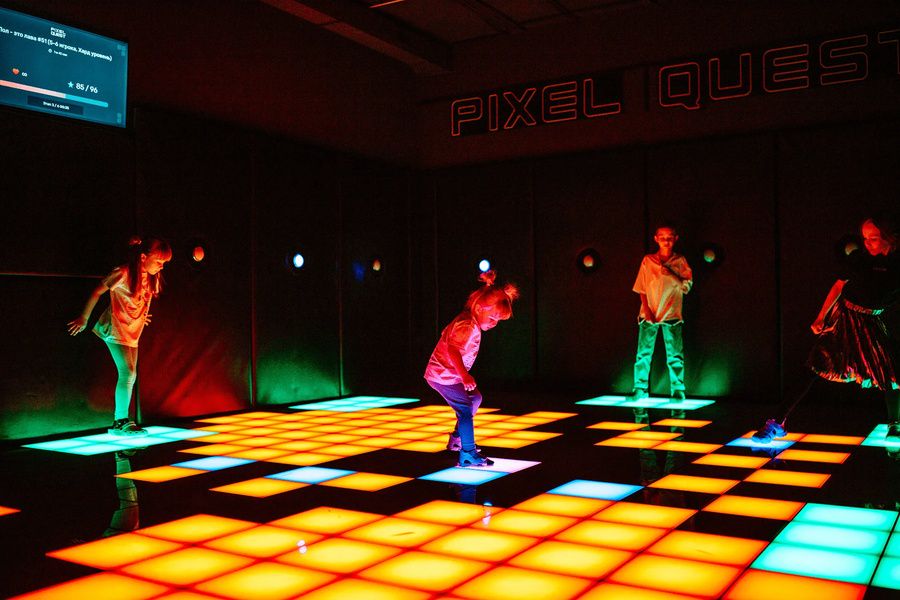 Pixel Quest — это не квест и не виртуальная реальность. Гости находятся в комнате с полом, который светится и реагирует на действия игроков. Вы бегаете, прыгаете и соревнуетесь в реальном пространстве.
