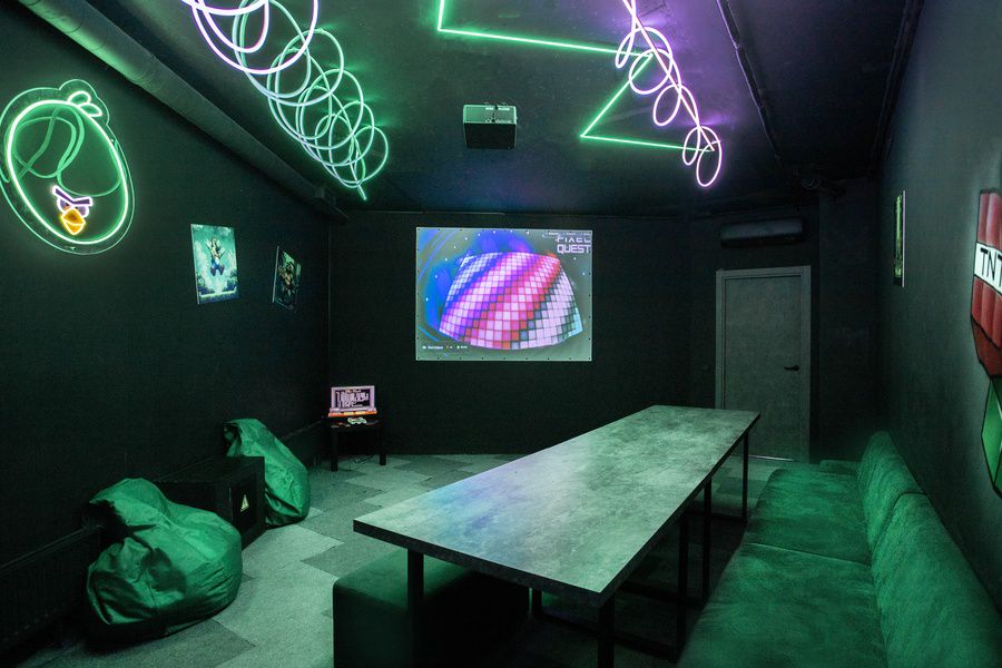 В пиксельной интерактивной комнате для каждого найдётся занятие по душе. Здесь будет интересно детям, увлекающимся «Роблокс» и «Майнкрафт», компаниям подростков и взрослым, которые хотят необычно провести досуг.