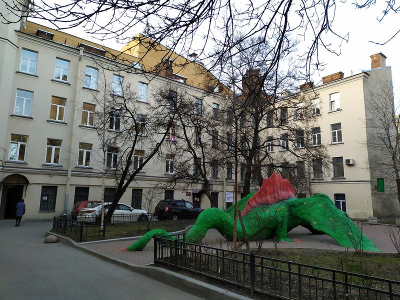 На Васильевском острове находится удивительный двор, который пользуется особой любовью как у жителей, так и у гостей Санкт-Петербурга. Между Большим проспектом, 7-й и 8-й линиями живёт необычный персонаж — большой зелёный дракон, который радует всех местных детишек.