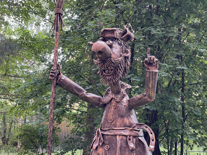 Это новая работа известного питерского кузнеца Сергея Мельникова, установленная здесь на радость детей и взрослых. Выполнена композиция методом ковки.