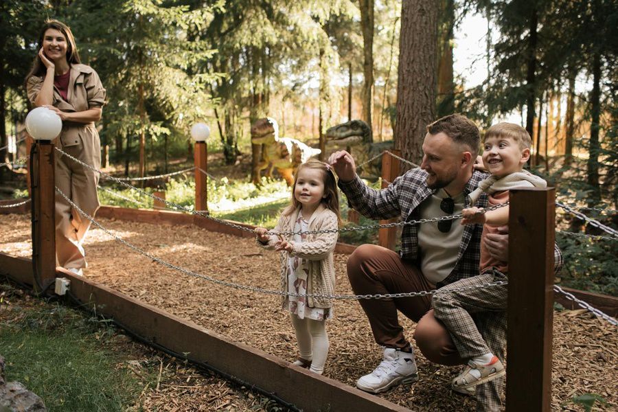 Посетителей динопарка ждёт знакомство с гигантскими доисторическими ящерами в окружении соснового леса. Любители лесных прогулок могут совершить путешествие по тропинкам на велосипедах и веломобилях. А поднявшись на колесе обозрения, можно с высоты полюбоваться лесом, небом и территорией курорта. Также есть бесплатные детские площадки — «Дракон», «Дом эльфов» и «Памп-трек».