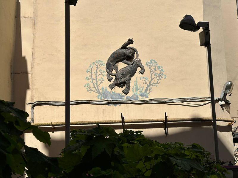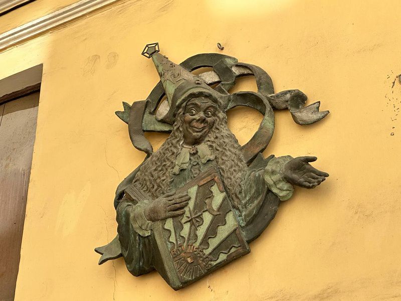 Войдя в волшебный дворик, вы попадаете на жёлтую кирпичную дорожку, по которой персонажи сказки Тотошка и Элли направлялись к Великому Гудвину. Жёлтая тропа приведёт вас к оцепленному стражниками Изумрудному городу, ворота которого охраняются Фарамантом. Стену дома украшает барельеф Виллины, доброй волшебницы, приглашающей вас посетить сказочную страну. По пути вы познакомитесь с героями любимой сказки, фигуры которых находятся в одном из дворов, — Железным Дровосеком и Страшилой. Заглянув в «страшный дворик», вы увидите отрицательных персонажей: злую чародейку Бастинду, Людоеда, летучих обезьян.