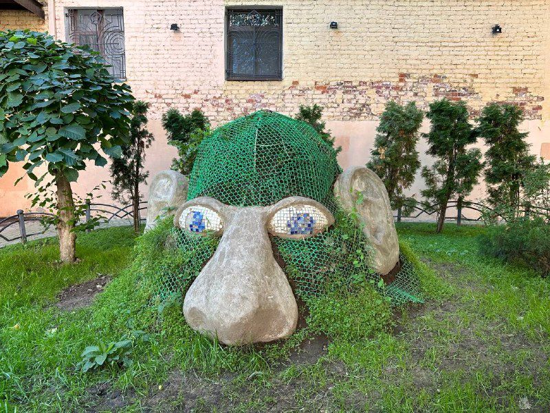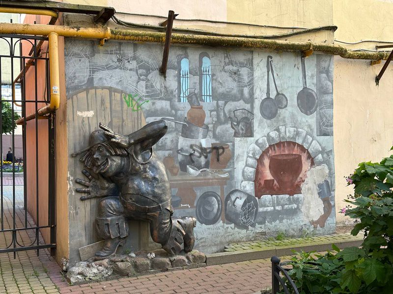 В основном все фигуры выполнены из железа, но некоторые, например, Страшила, сделаны из меди. А Гудвин и вовсе представлен в виде большой цветочной клумбы, поэтому зимой он исчезает.