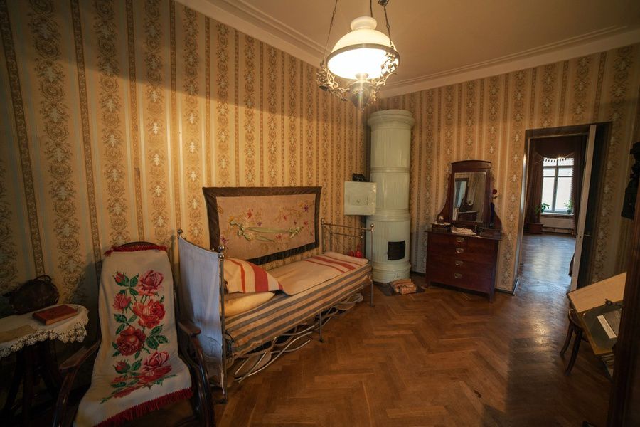 В квартире сохранились оригинальные предметы: кухонная плита, медная ванна, таз с кувшином, раковина в ванной комнате, табурет, кровать и даже скалка. Всего в экспозиции представлено 187 единиц хранения.
