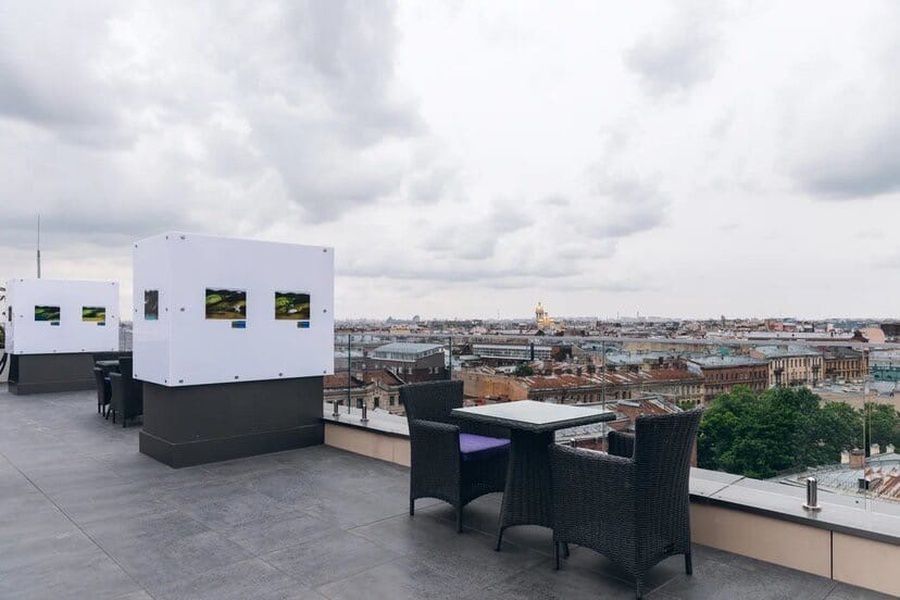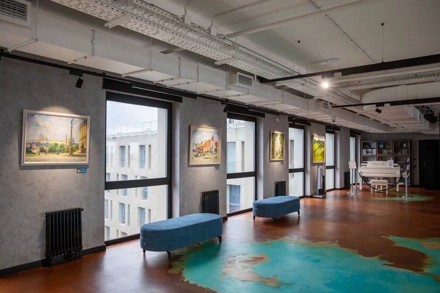 Площадка включает два уровня — саму галерею площадью 860 квадратных метров и виртуальное пространство с арт-объектами. А ещё здесь есть терраса, откуда открывается потрясающий вид на город.